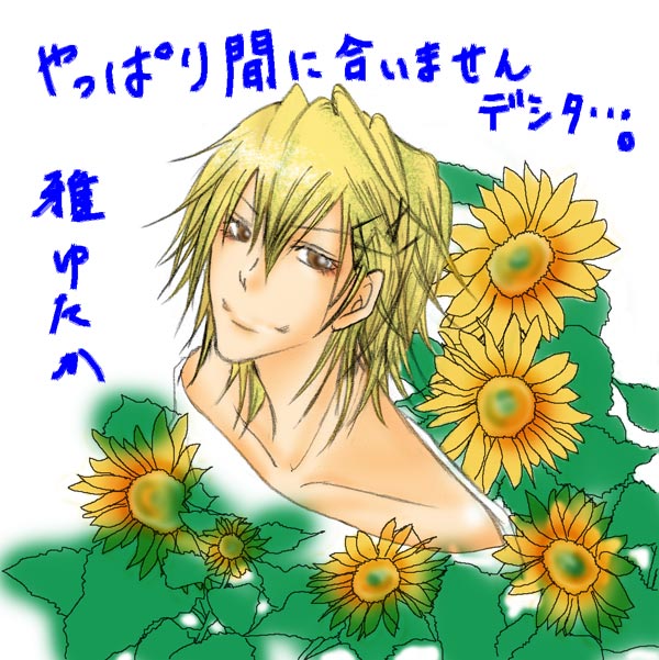 頑張って描いてます(汗)。ディーノ、雲雀、骸それぞれに花を添えてv いや、一番の華は彼ら自身ですけどね(上手くね?これ