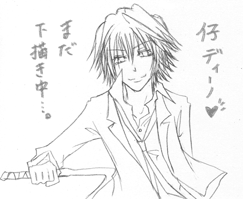 【↑おまけ】今日の落書きは…というか落書きではなくカラー絵の下書きです。はいはい、落書きと大差ないですよ(開き直る)。