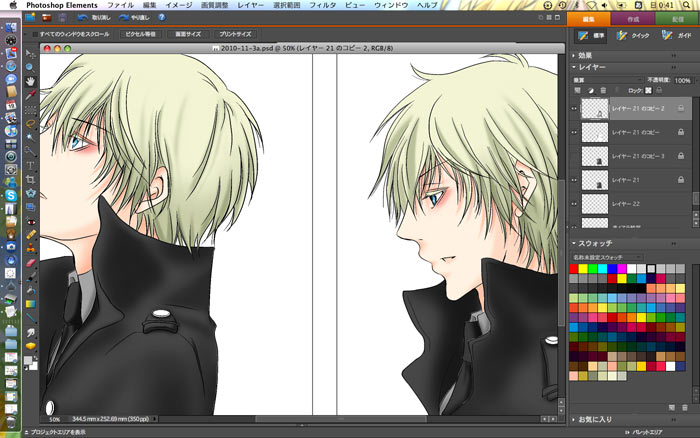 ちなみに双子じゃないです、左が表1で右が表4となります。今回は、コマ送りのように、連続した構図にしたかったので。
