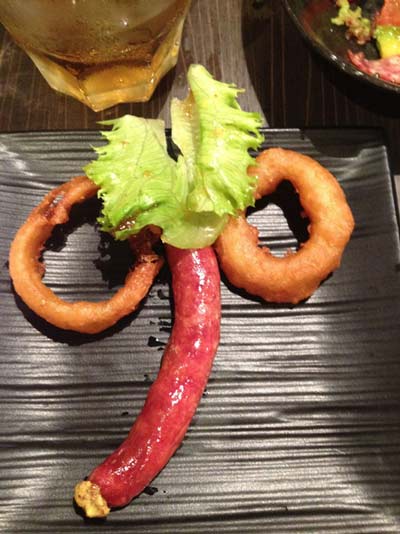 下の画像は、跳ね馬ソーセージで悪ふざけをした結果です。