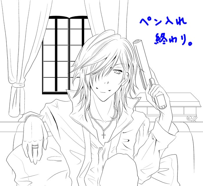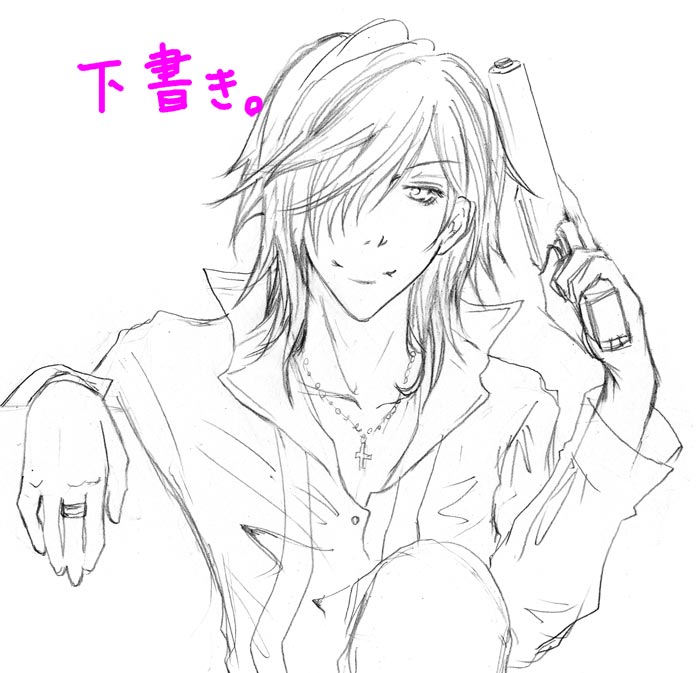 【たまにはマフィアっぽいのも描いてみたい】三十路ディノ。今晩からペン入れして明日には着色したいです。ほんとはリボルバーにしたかったけど資料ないから諦めた。実際マフィアって危険な存在なんだから、ボスにも怖い部分があってもいいと思う。