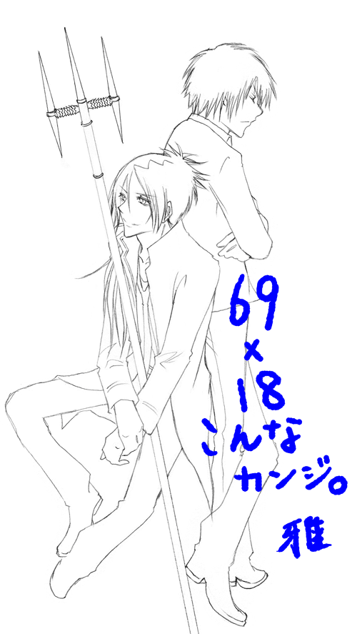 昨日骸さん単品になるかもと書いたら、雲雀さんも描けとのお言葉を頂きましたので、原稿そっちのけで雲雀さんも描き加えてみました。
